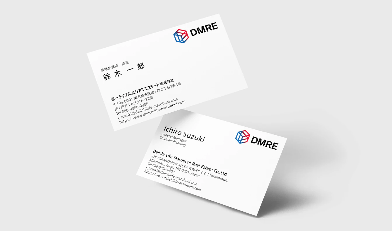 株式会社第一ライフグループと丸紅株式会社、それぞれの強みを融合し、国内不動産バリューチェーンの強化・拡大と新たな価値創造を目指して設立された第一ライフ丸紅リアルエステート株式会社(略称:DMRE)。グラムコは、そのグループビジョンを起点に、グループロゴおよびコーポレートロゴの制作に加え、ロゴの世界観を拡張するグラフィックエレメントを開発。さらに、グループ表記を規定したブランドガイドラインの開発、各種コミュニケーションツールへの展開までを一貫して担当しました。両社の知見が掛け合わされた新しい企業が、国内トップ水準、そして世界へと飛躍していくために、価値の蓄積先となるブランドの核をデザイン。多様なタッチポイントにおいて、一貫した印象で発信できる基盤づくりを支援しました。